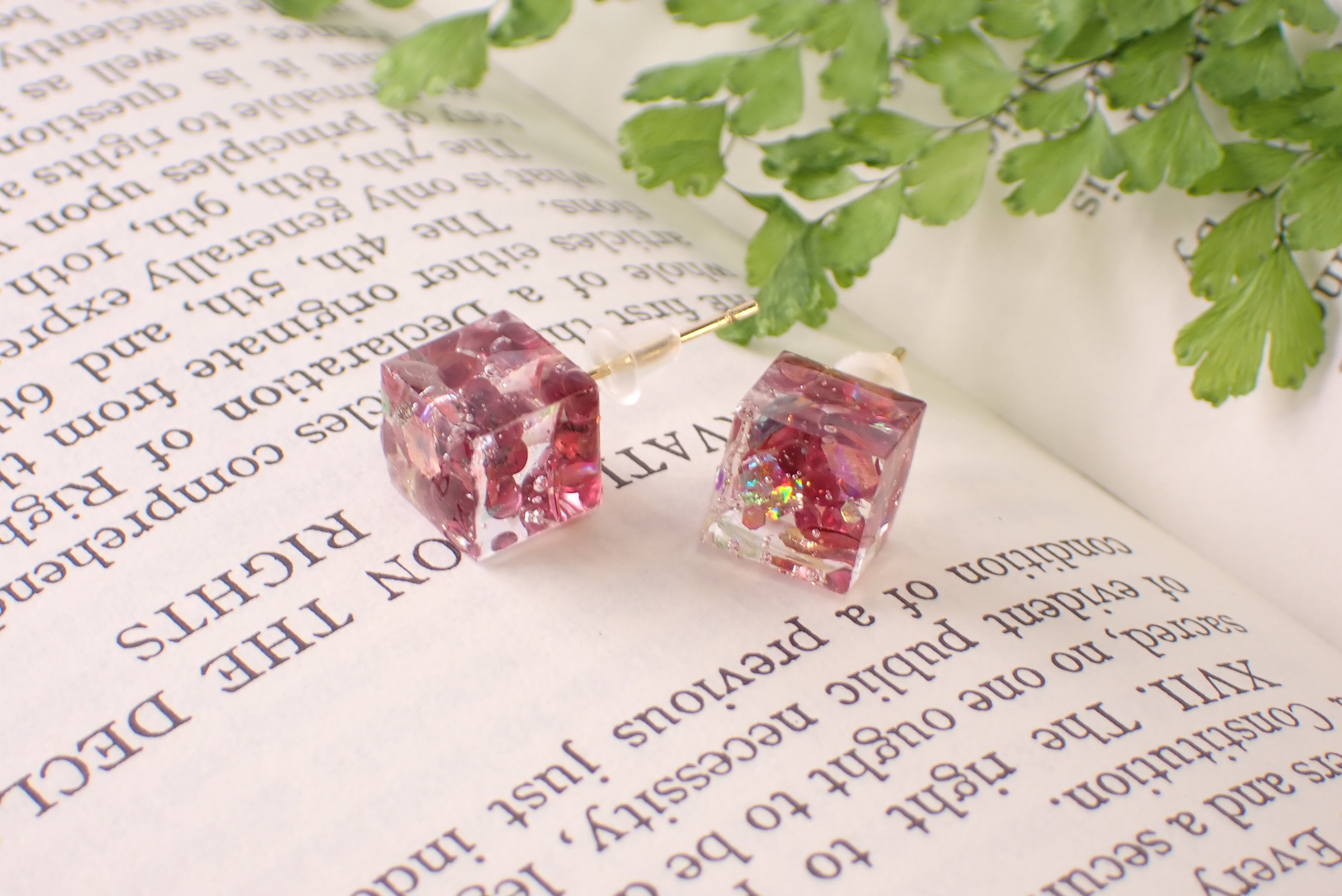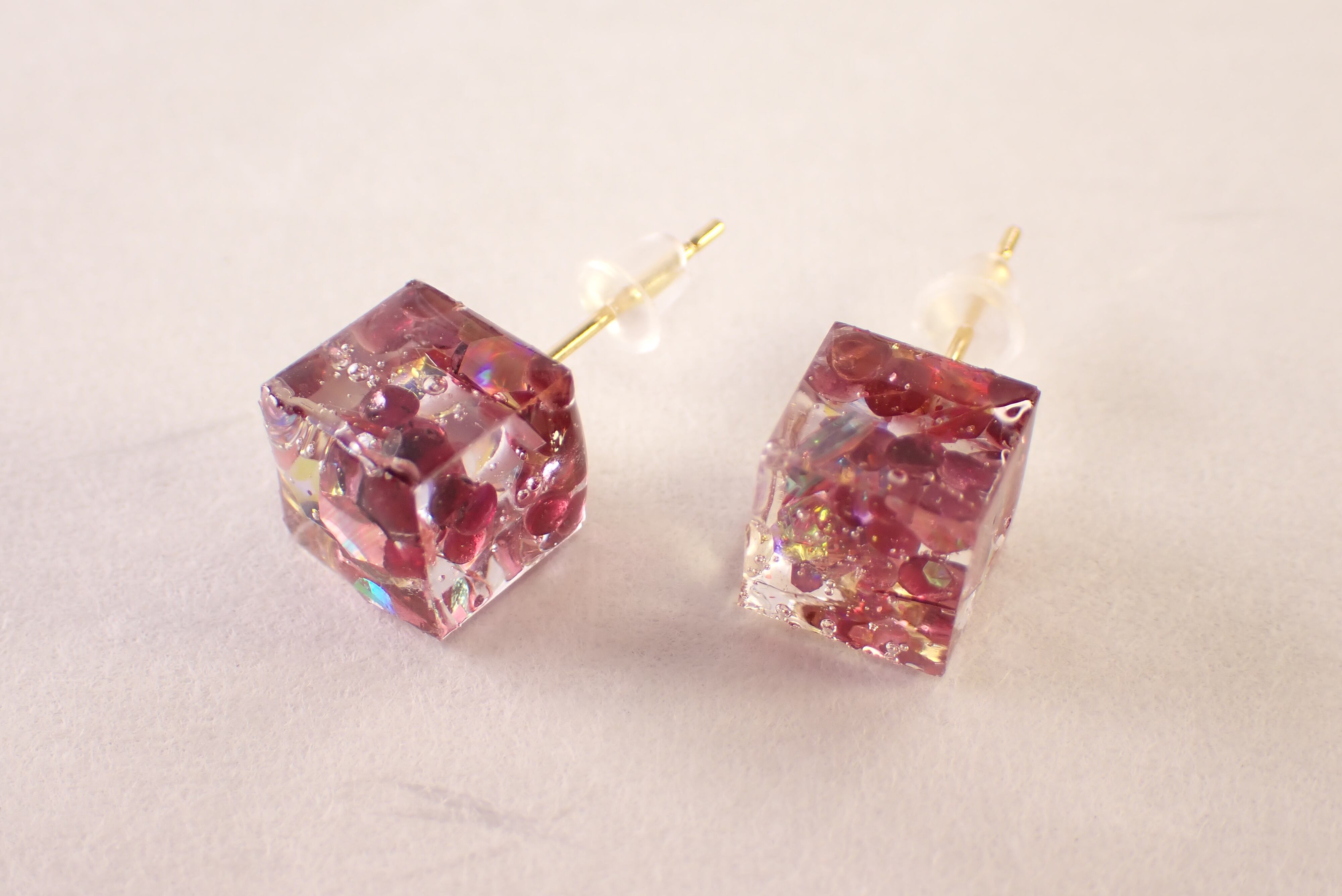 ガーネットレジンピアス [D11‐217]