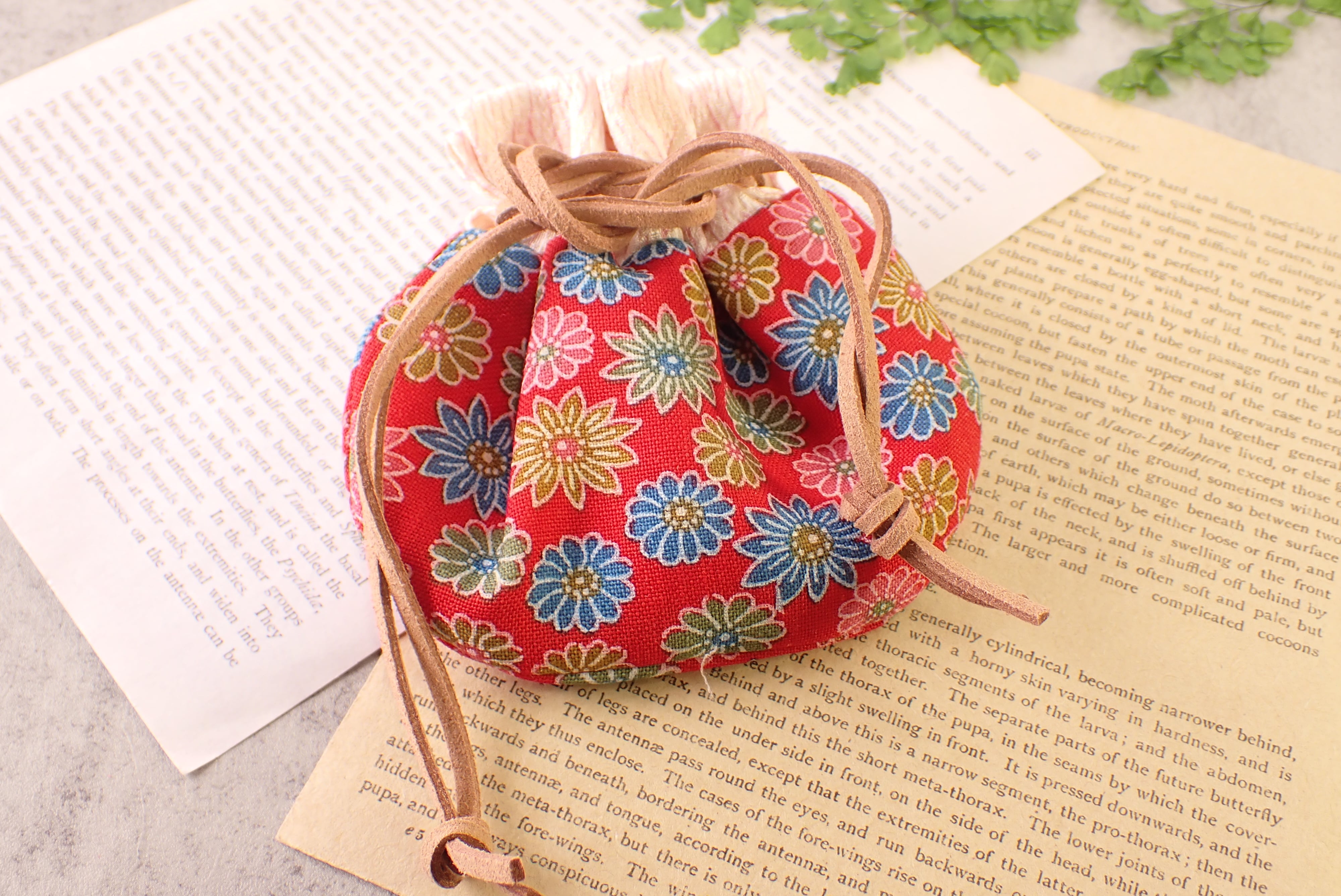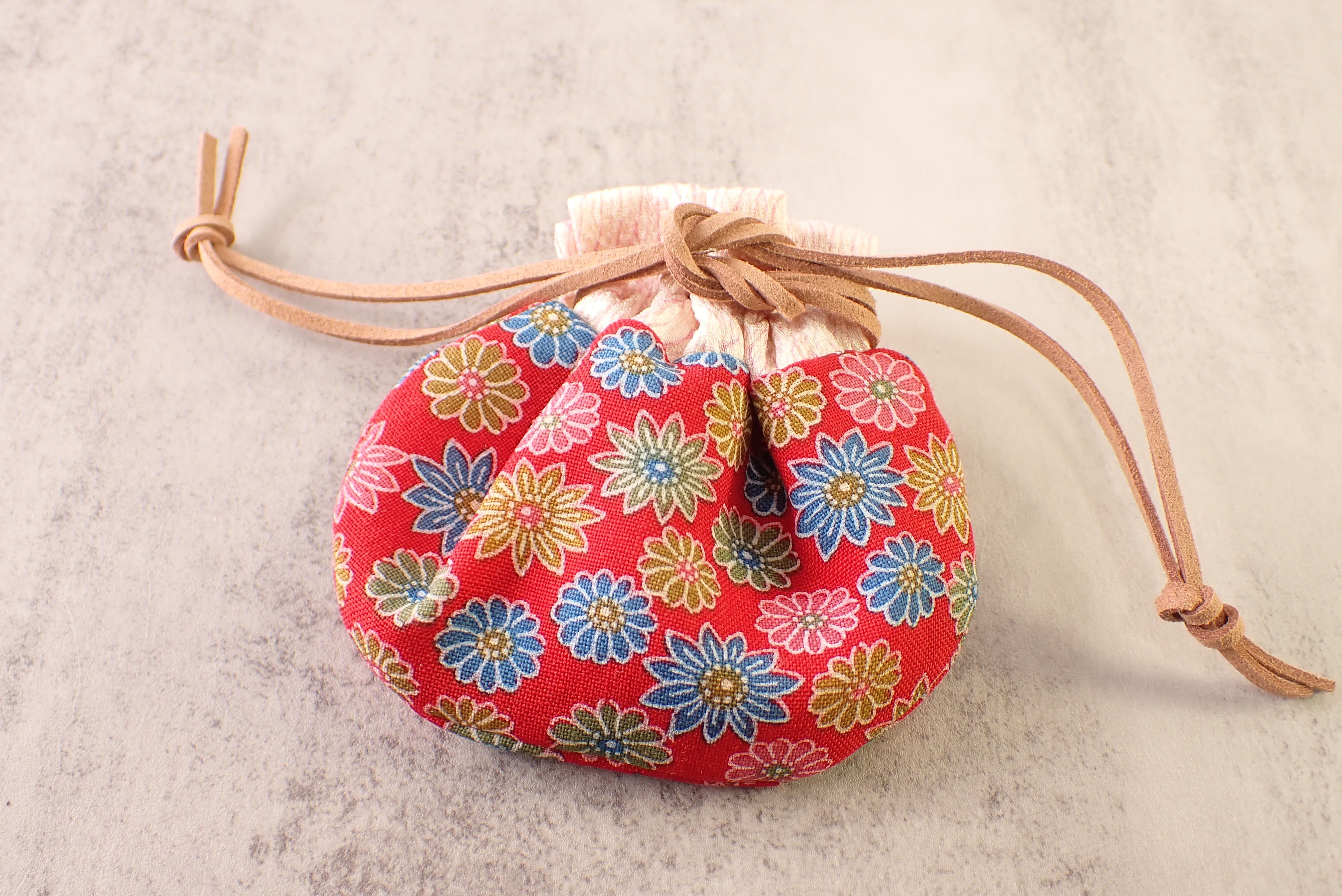 着物を再利用して作られた巾着袋です!