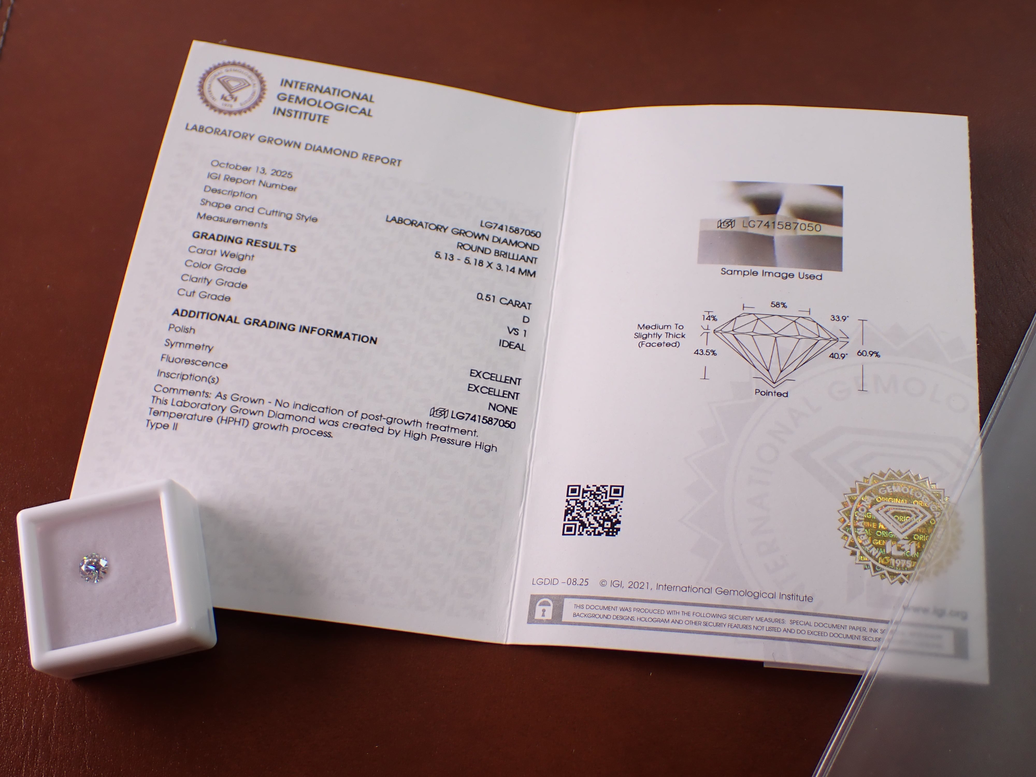 ラボグロウンダイヤモンド 0.51ct D/VS1/ID [D1‐4]