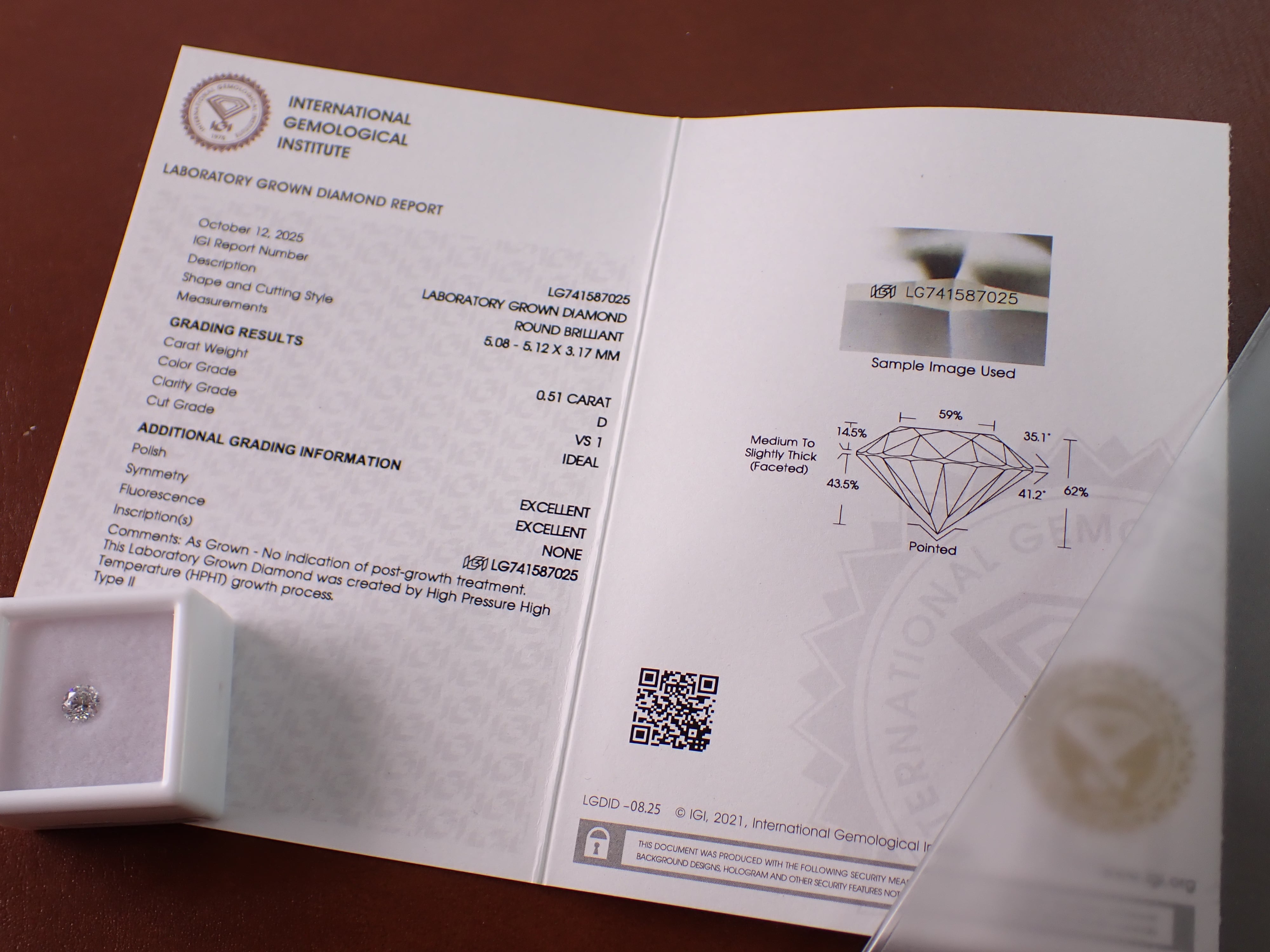 ラボグロウンダイヤモンド 0.51ct D/VS1/ID [D1‐6]