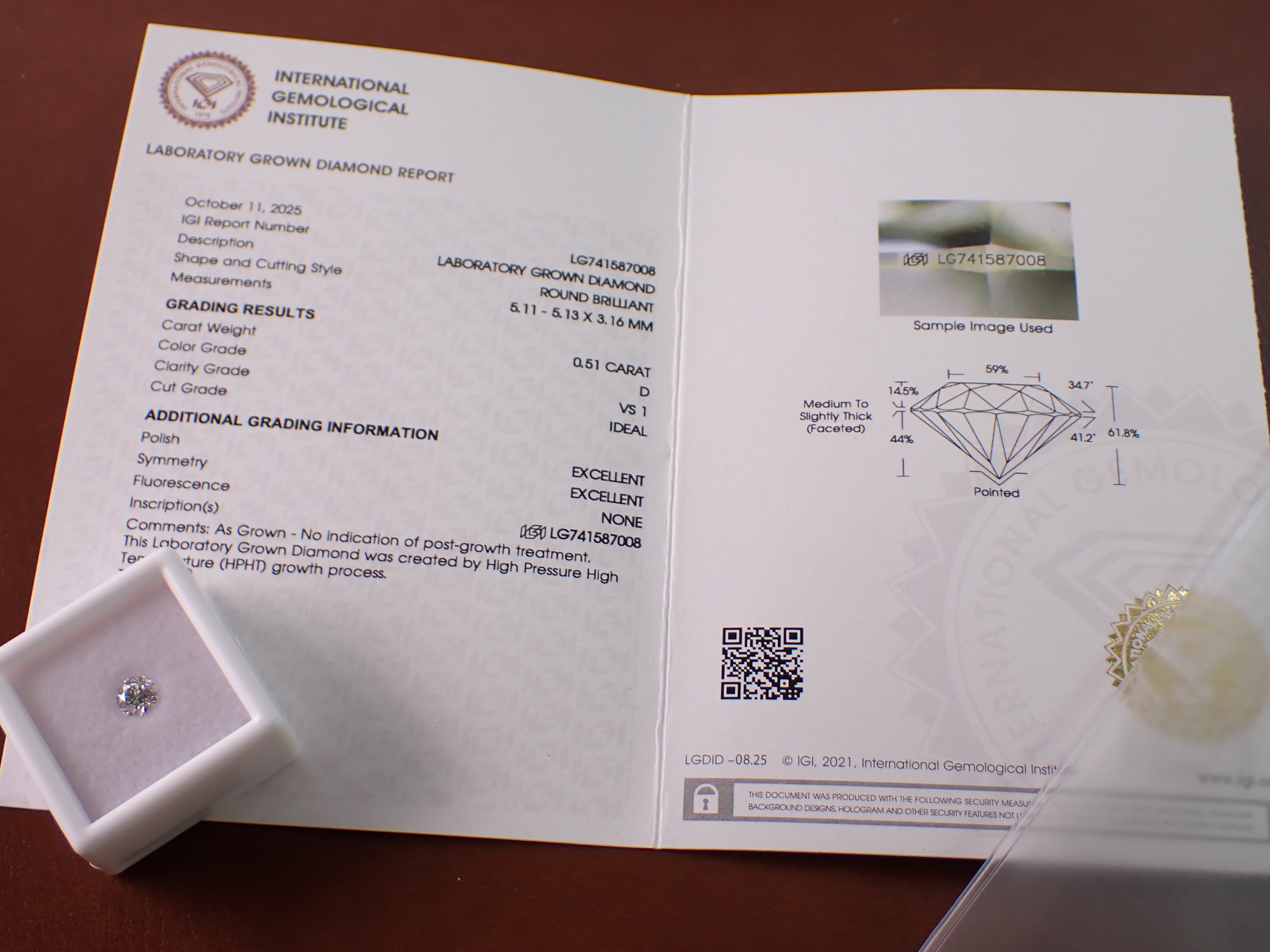 ラボグロウンダイヤモンド 0.51ct D/VS1/ID [D1‐7]