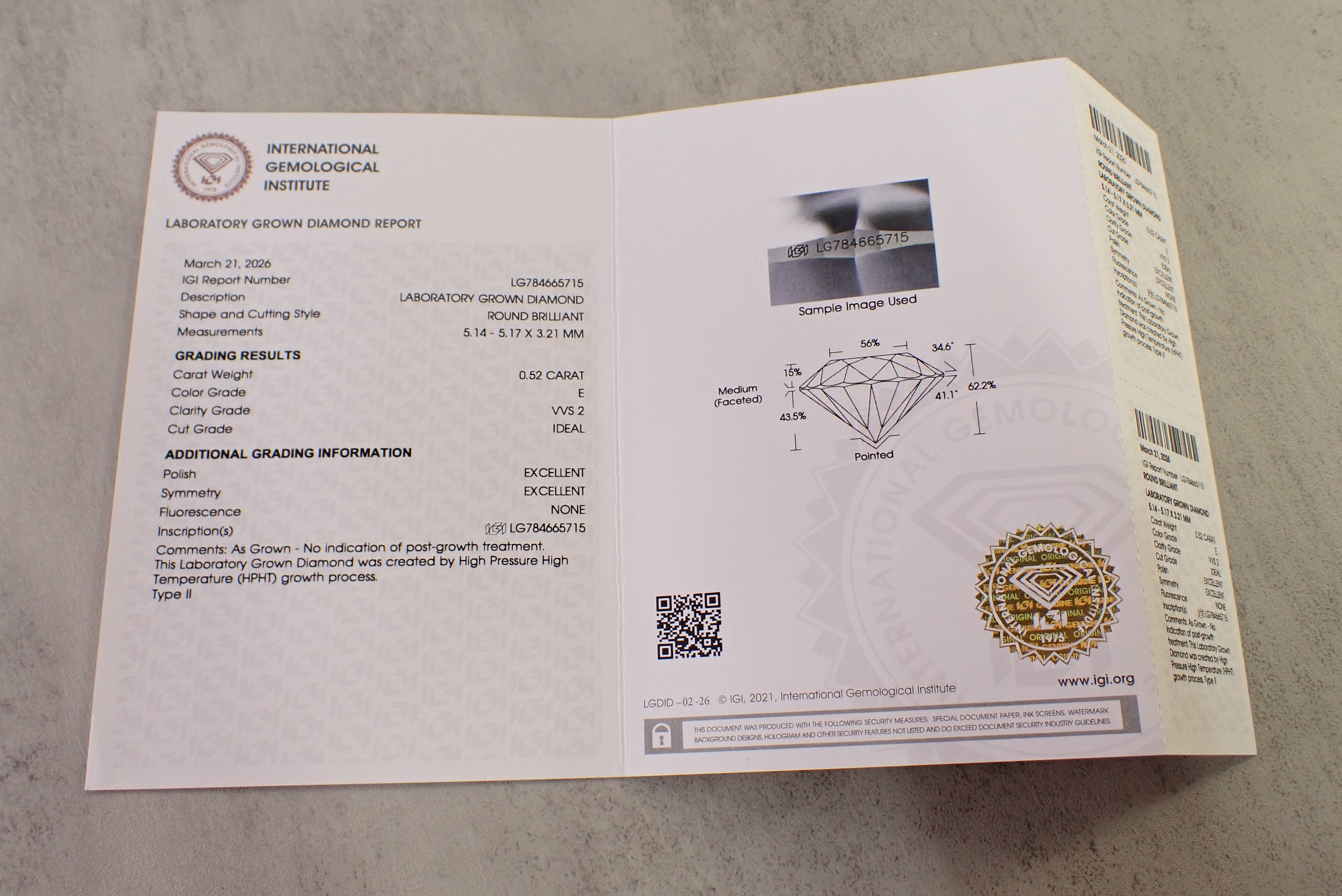 宝石名 ラボグロウンダイヤモンド IGI鑑定書付 E/VVS2/ID/