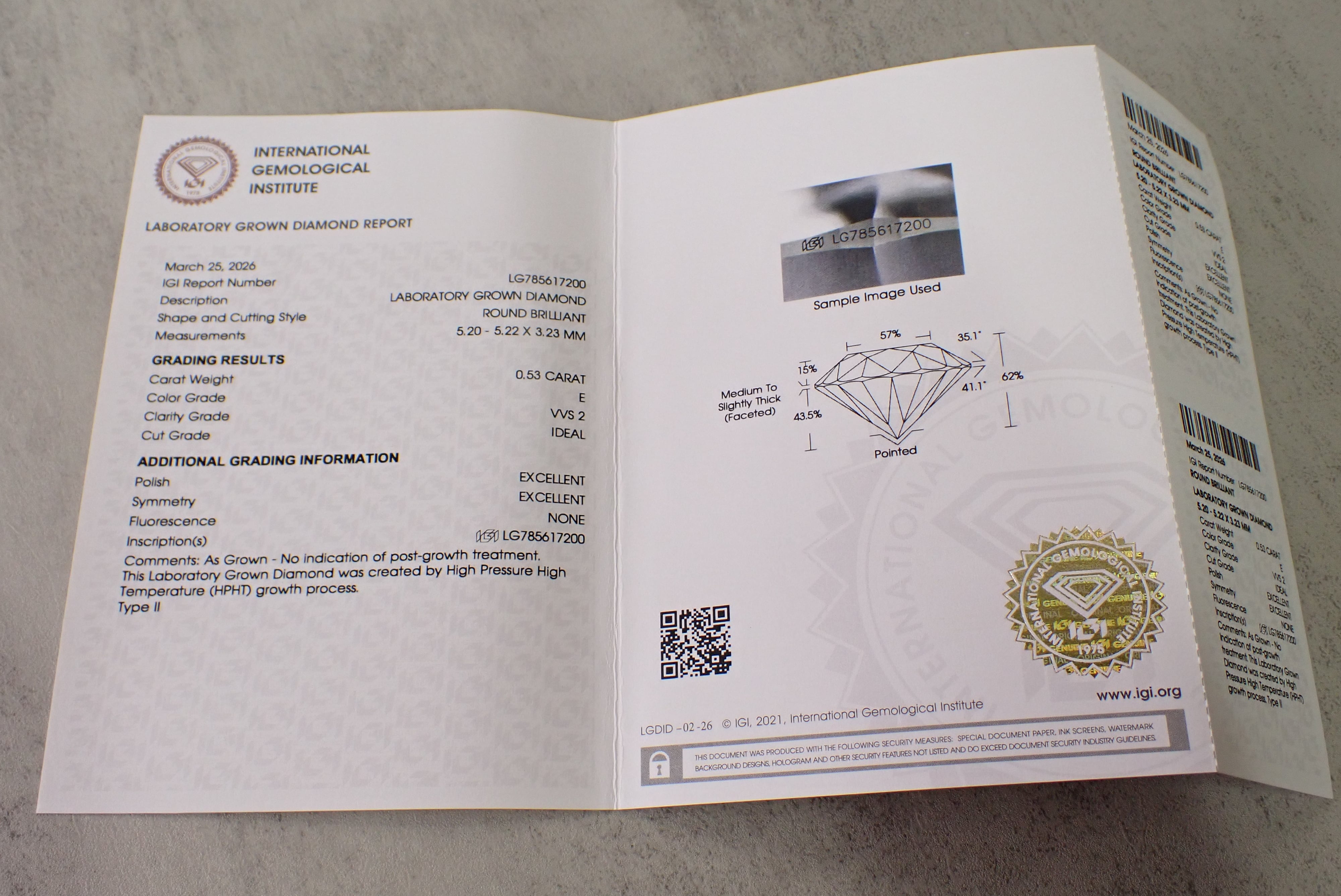 ラボグロウンダイヤモンド IGI鑑定書付 E/VVS2/ID/0.53ct [D4-246]
