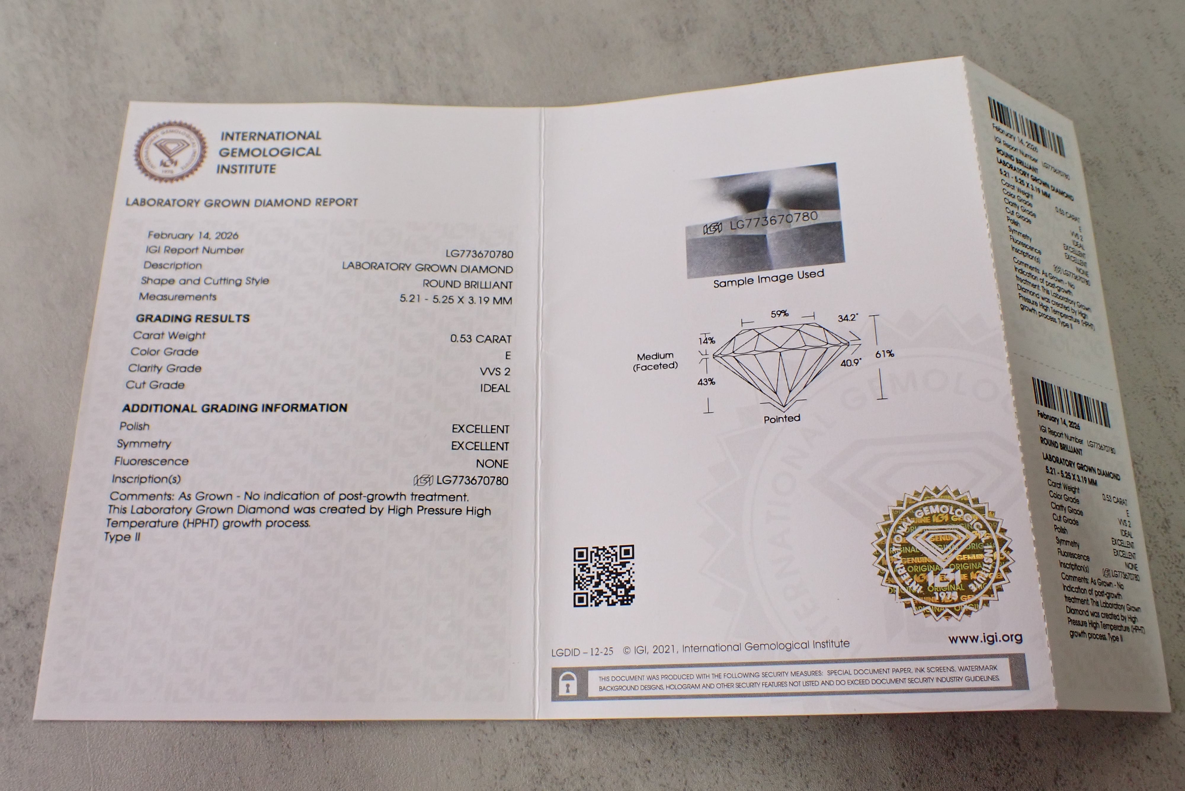 ラボグロウンダイヤモンド IGI鑑定書付 E/VVS2/ID/0.53ct [D4-247]
